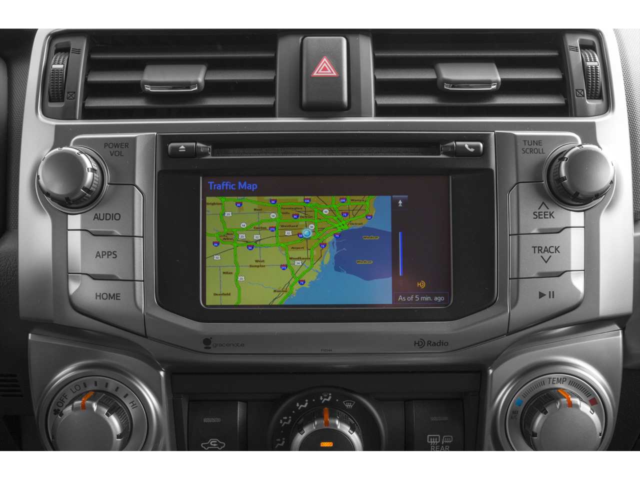 - Radio: Entune Audio Plus -inc: Entune Multimedia bundle (6.1-inch high resolution touch-screen display, AM/FM CD player, MP3/WMA playback capability, auxiliary audio jack, USB 2.0 port w/iPod connectivity and control, advanced voice recognition, hands-free phone capability, phone book access and music streaming via Bluetooth® wireless technology), SiriusXM All Access Radio w/3-month complimentary trial, HD Radio, HD traffic and weather in major metro areas, and integrated backup camera display, Entune App Suite includes Bing, Facebook Places, iHeartRadio, MovieTickets.com, OpenTable, Pandora and Yelp; real-time info including traffic, weather, fuel prices, sports and stocks Access to Entune services is complimentary for three years. See toyota.com/entune for details.