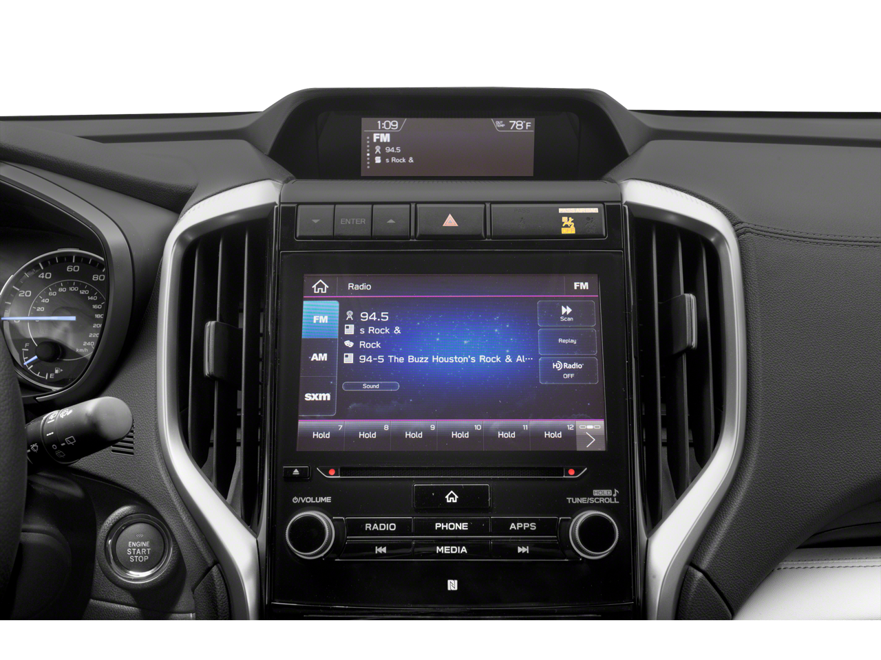 - Radio: Subaru STARLINK 8.0" Multimedia Plus System -inc: AM/FM stereo HD Radio w/single disc CD player, MP3/WMA/CRR/RW file capability, multi touch gesture high resolution LCD display screen, voice activated controls, Bluetooth® audio streaming connectivity, Bluetooth® hands-free phone connectivity, Bluetooth® hands-free SMS text messaging connectivity (applicable w/compatible cell phone), Near Field Communication (NFC), iPod control capability, SiriusXM All Access radio (subscription required), SiriusXM Travel Link (subscription required), smartphone integration for Aha, Android Auto, CarPlay and Pandora, STARLINK cloud applications, steering wheel controls for audio and Bluetooth®, 6 speakers, 3.5mm auxiliary input jack and front, second and third row dual USB ports